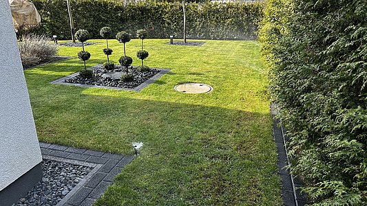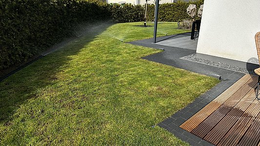 Effiziente Beregnungssysteme sorgen für optimale Wasserversorgung und gleichmäßiges Pflanzenwachstum – ob im privaten Garten, in Parkanlagen oder auf gewerblichen Flächen. Von der Planung über die Installation bis zur Wartung bieten wir alle Leistungen aus einer Hand. Als zuverlässiger Partner setzen wir auf präzise Steuerungssysteme, hochwertige Komponenten und langlebige Qualität – für dauerhafte Grünflächen.