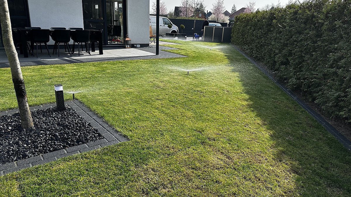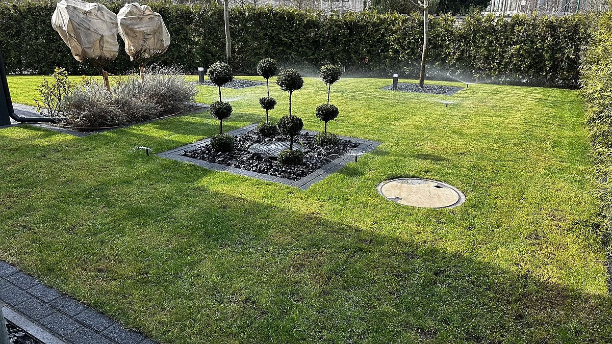 Effiziente Beregnungssysteme sorgen für optimale Wasserversorgung und gleichmäßiges Pflanzenwachstum – ob im privaten Garten, in Parkanlagen oder auf gewerblichen Flächen. Von der Planung über die Installation bis zur Wartung bieten wir alle Leistungen aus einer Hand. Als zuverlässiger Partner setzen wir auf präzise Steuerungssysteme, hochwertige Komponenten und langlebige Qualität – für dauerhafte Grünflächen.